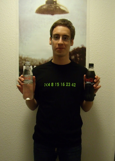 An jenem denkwürdigen 26. Mai 2010 war es dann aber so weit, und ein glücklicher Wink des Schicksals wollte es, dass zwei der mir liebsten Menschen mich auf dieser großen Reise in ein ungewisses Ende begleiten konnten und wollten: Anna und Stefan! Sie, 1,72m groß, lange, schwarzrote Haare, undefinierbar braune, wunderschöne Augen. Er, 1,71m groß, braune, vor Energie strotzende Haare, Rundungen wie Helene und Charme wie Schirm und Melone. Sie war schon da, und Stewie gesellte sich zu später Abendstunde noch hinzu, und so begab es sich, dass wir das große Finale eng zusammengekuschelt auf meinem Sofa und in HD genießen konnte. Stewie brachte auch unsere ultracoolen LOST-Fanshirts mit, und so forderte uns das Schicksal dann auch zu einem weiteren Fotoshooting unter dem Motto "Black and White" heraus. Auch wenn die künstlerischen Mittel (und vor allem das Equipment) eher beschränkt waren, haben wir versucht das beste herauszuholen. Ein Klick auf das Bild enthüllt die ganze Wahrheit!
